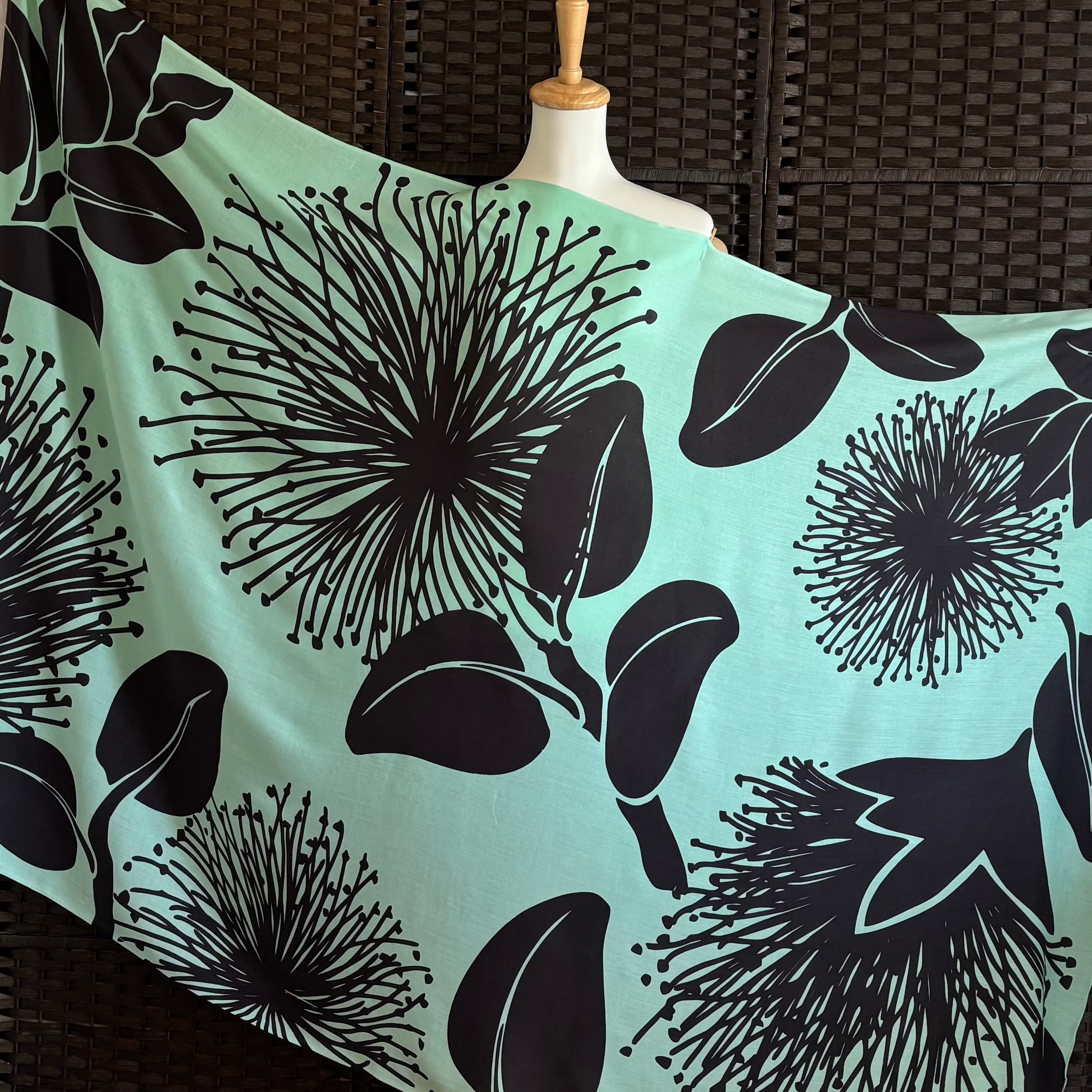 パレオ 【OHIA FLOWER-EGGSHELL BUE- VOLCANIC GLASS】ハワイ直輸入 パレオ 大判 ストール フラダンス タヒチアン