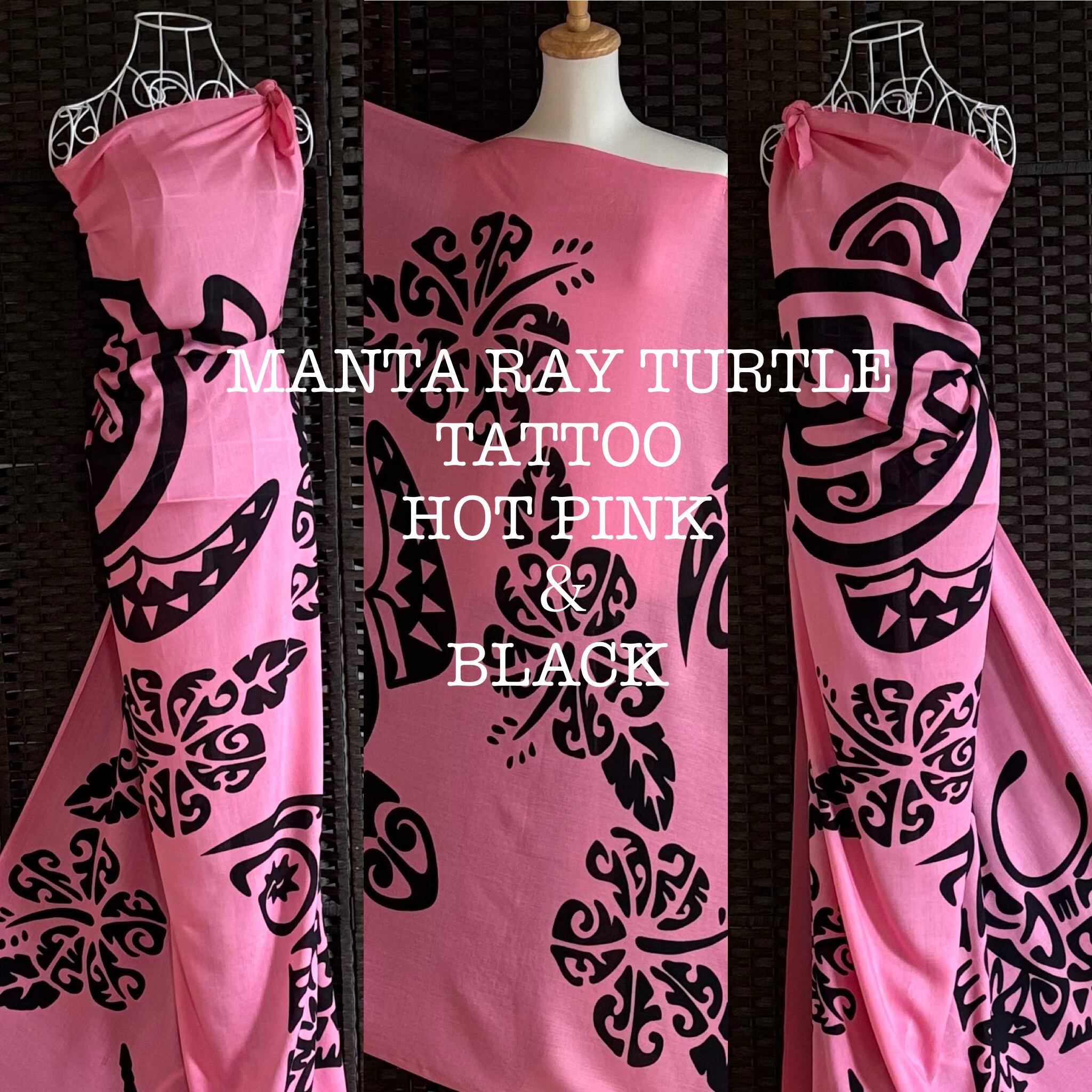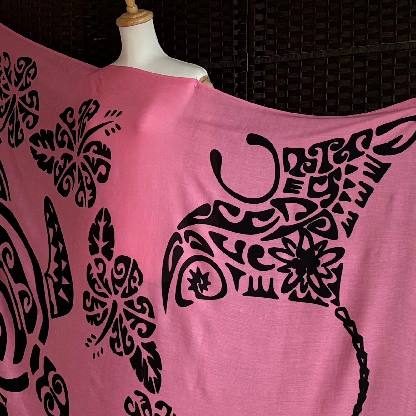 パレオ 【MANTA RAY TURTLE TATTOO-HOT PINK-BLACK 】ハワイ直輸入 パレオ 大判 ストール フラダンス タヒチアン