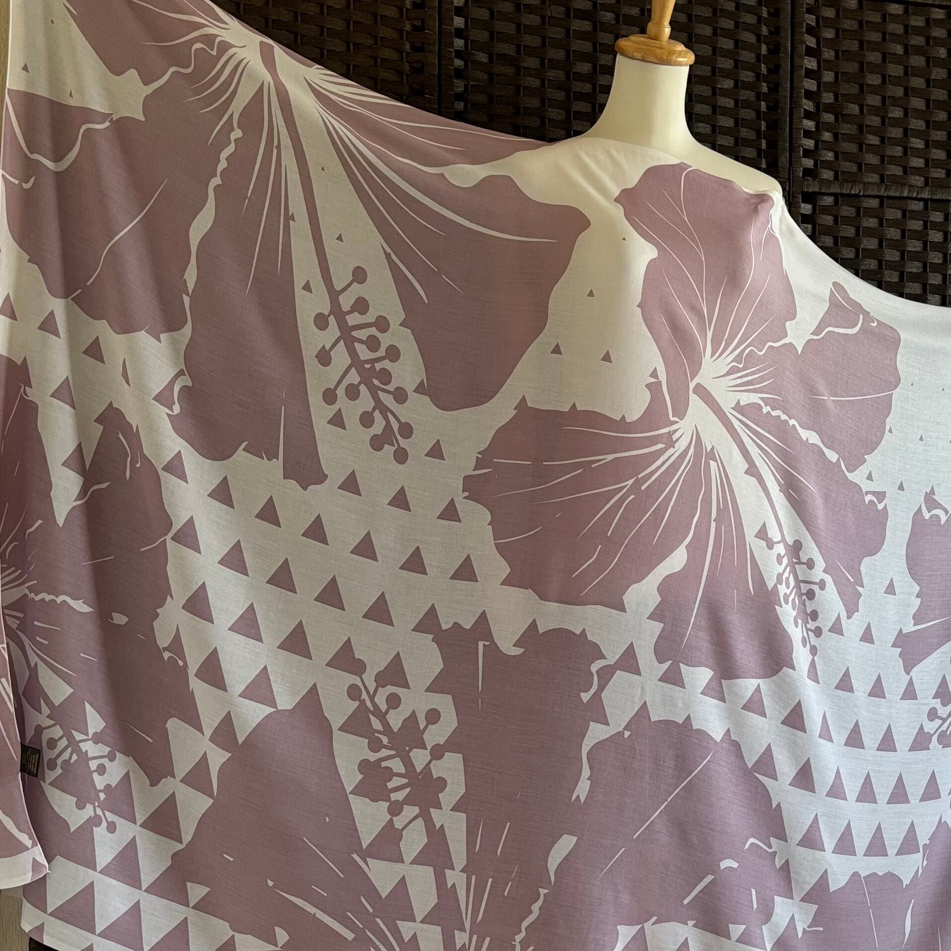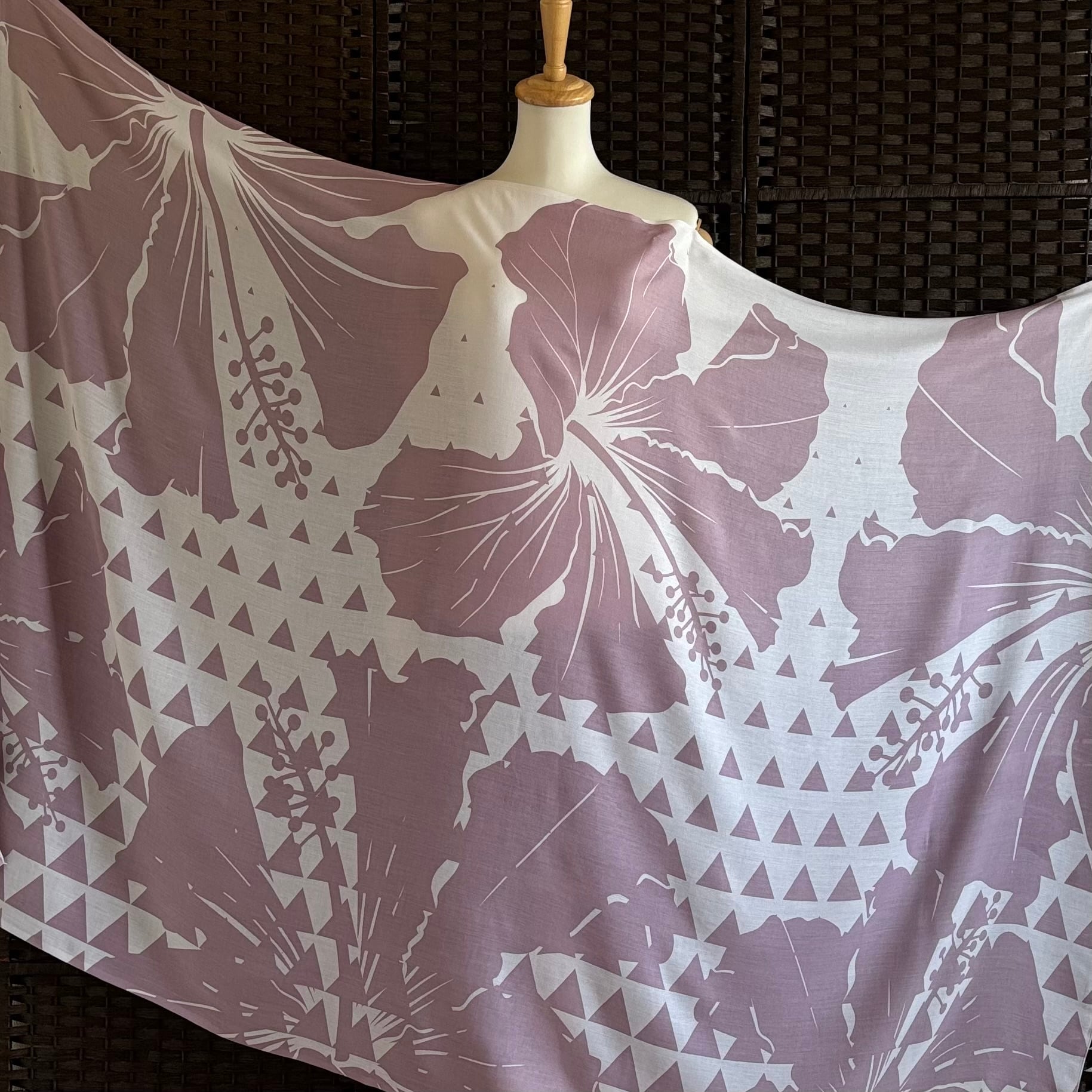 パレオ 【HIBISCUS TRIANGLE-WHITE-BURNISHED LILAC】ハワイ直輸入 パレオ 大判 ストール フラダンス タヒチアン