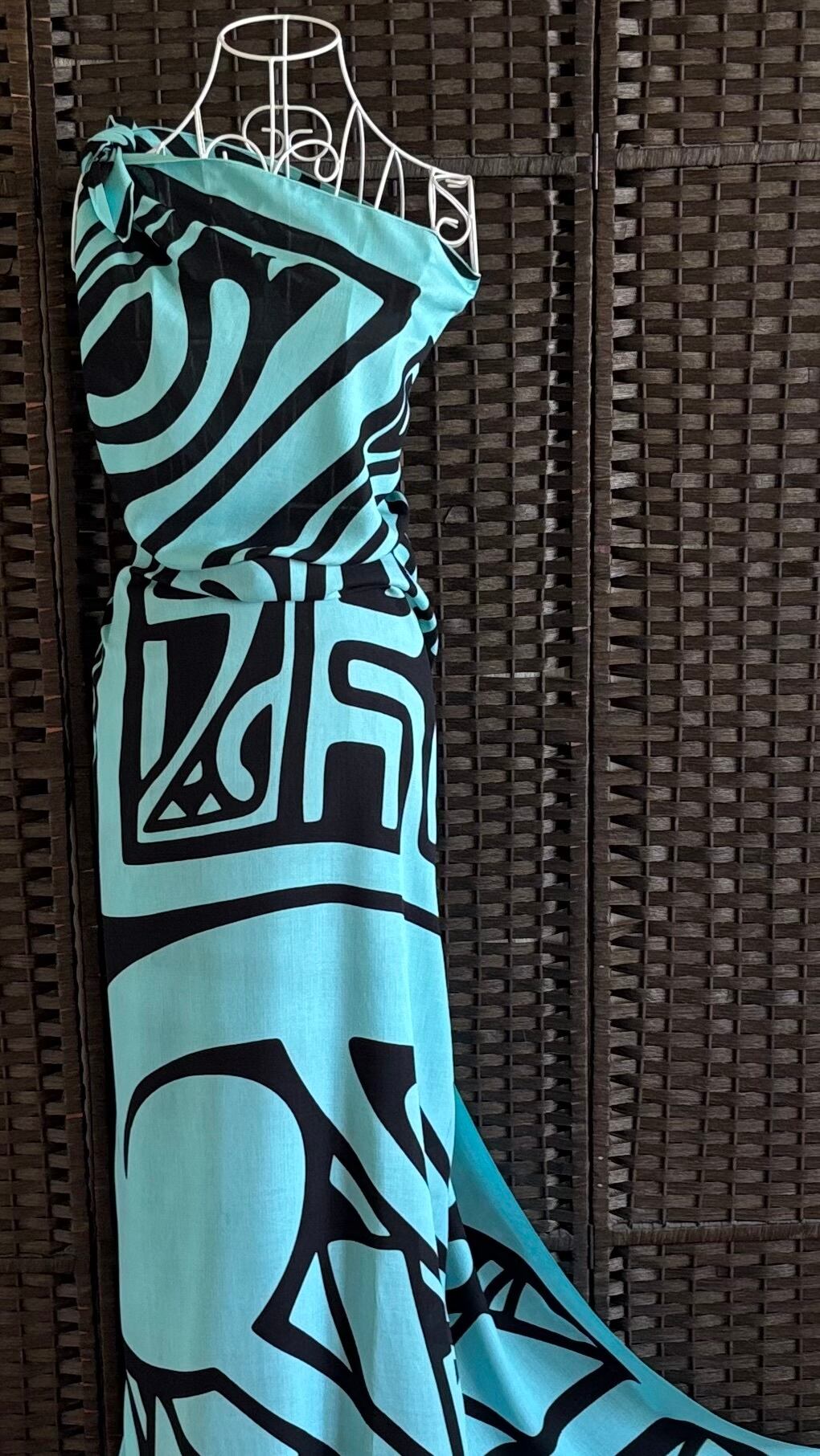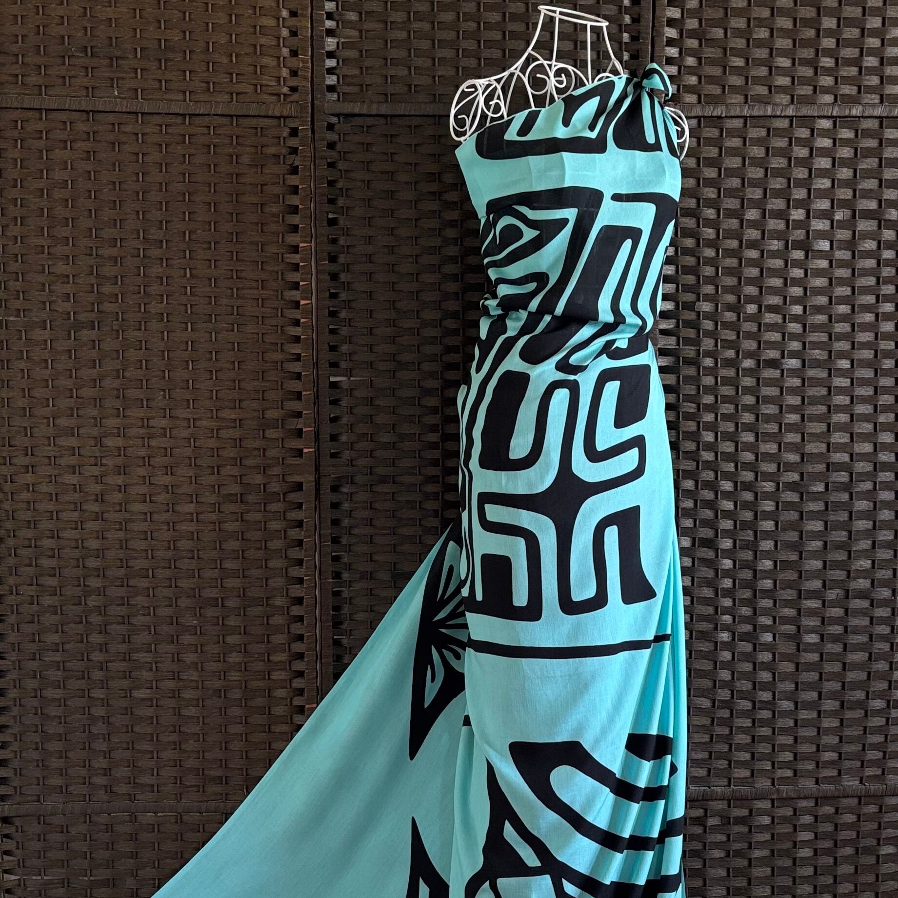パレオ 【HILO-BLUE TURQUOISE-BLACK】ハワイ直輸入 パレオ 大判 ストール フラダンス タヒチアン