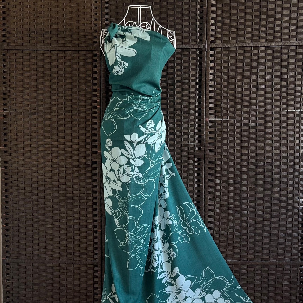 パレオ 【PLUMERIA LEI-AVENTURINE-NIMBUS】ハワイ直輸入 パレオ 大判 ストール フラダンス タヒチアン