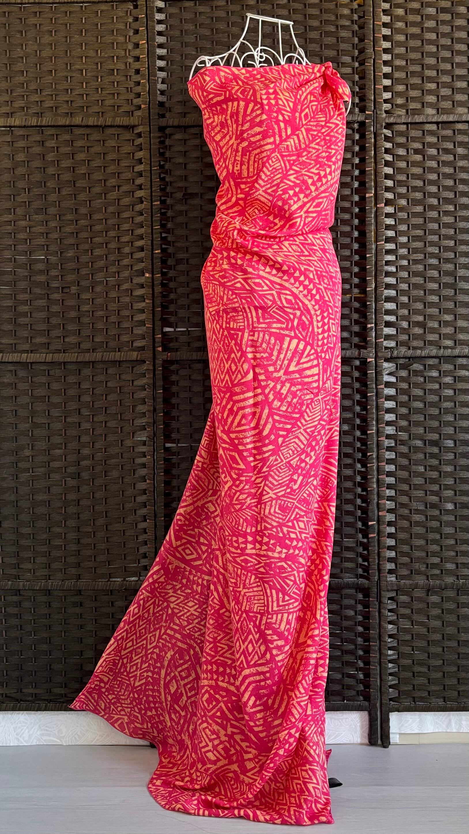 パレオ 【SAMOA-APRICOT WASH-HOTPINK】ハワイ直輸入 パレオ 大判 ストール フラダンス タヒチアン