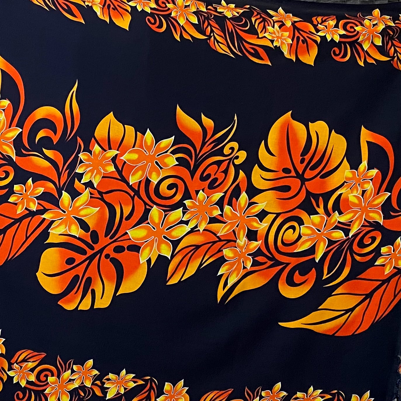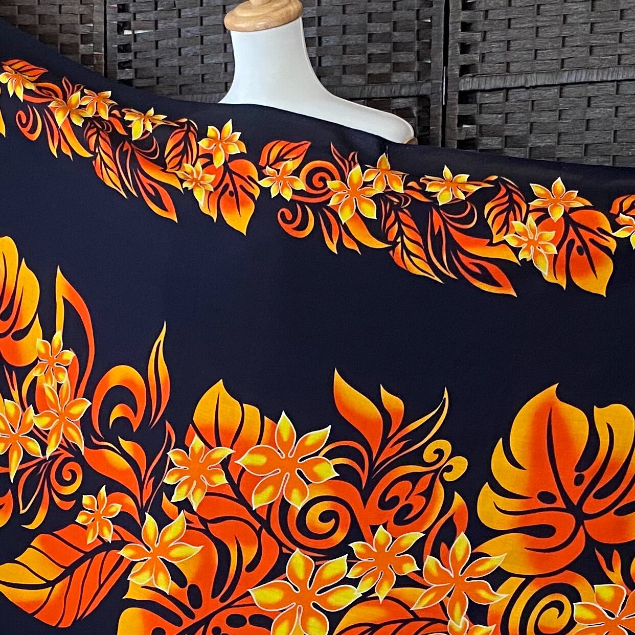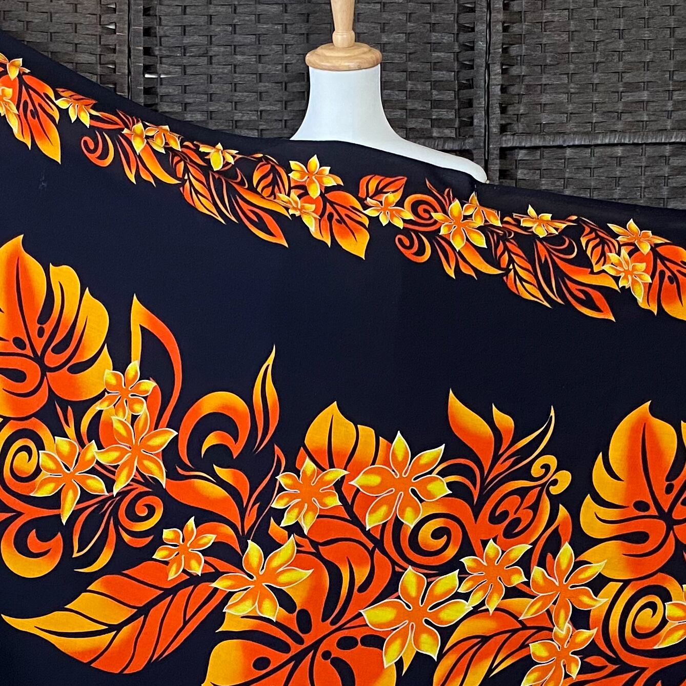 パレオ 黒地【 モンステラ プルメリア 】オレンジ
