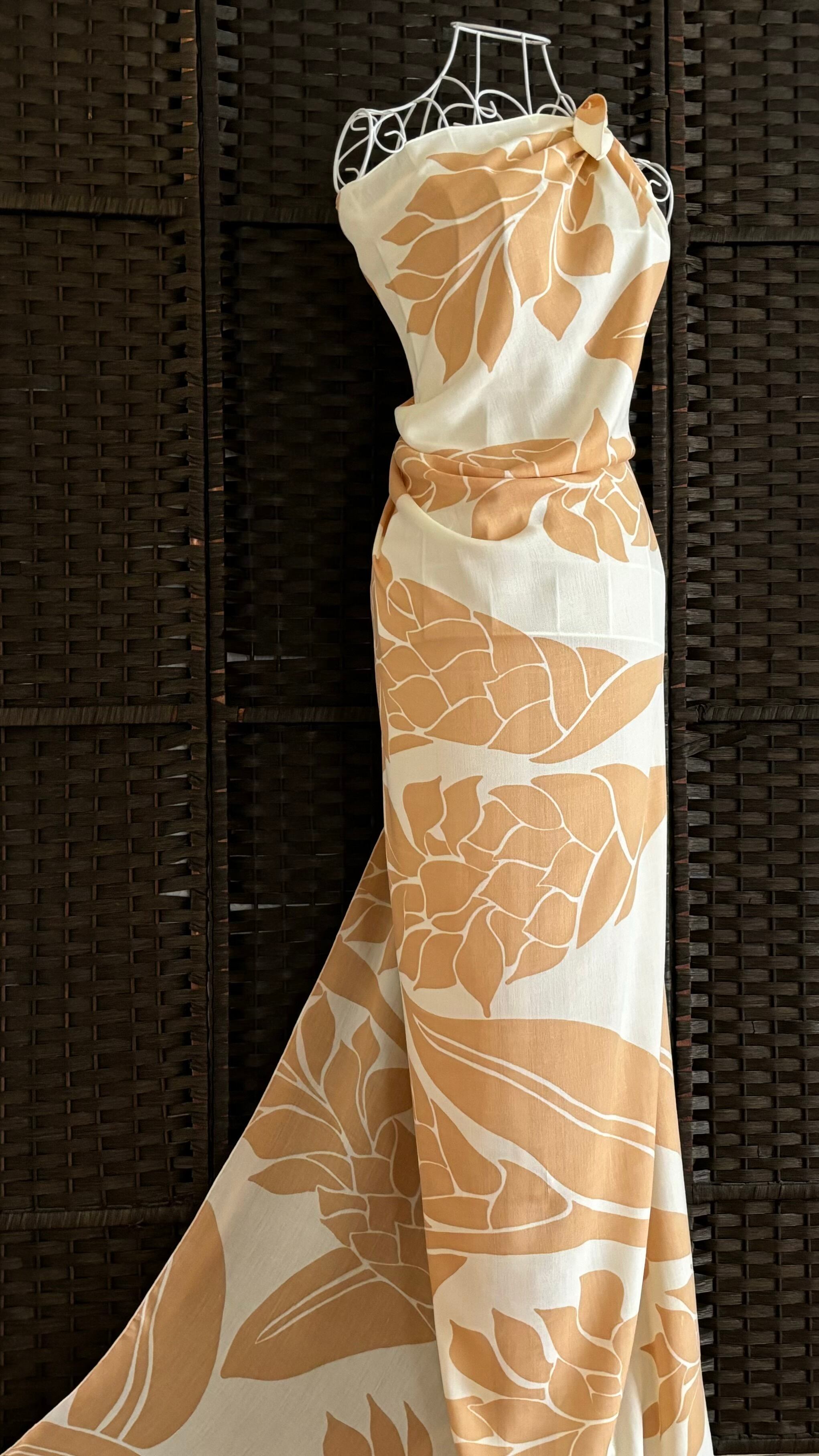 ジンジャーフラワー柄 ハワイ直入 パレオ 【GINGER FLOWER-PAPYRUS-BUTTERUM】タヒチアン フラダンス