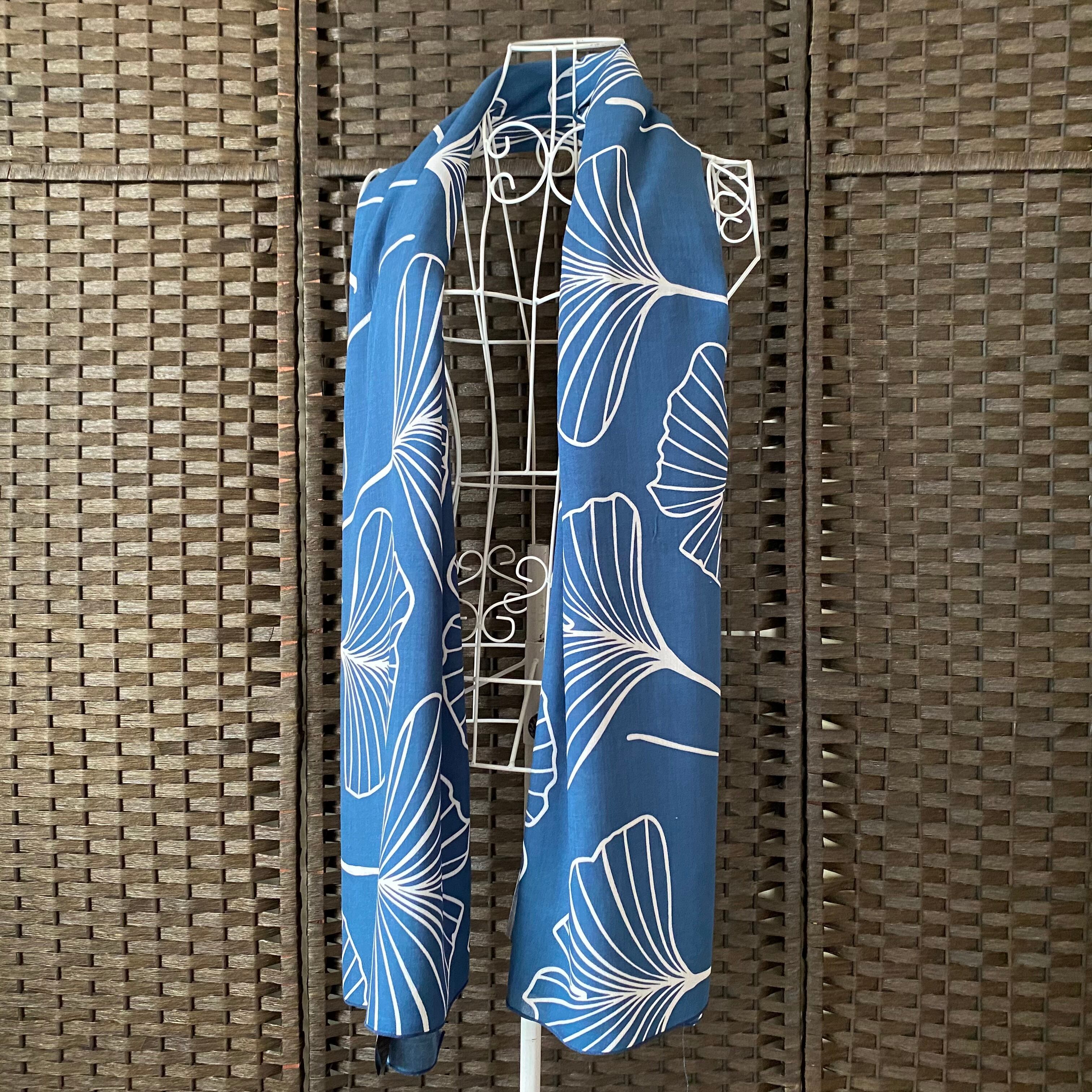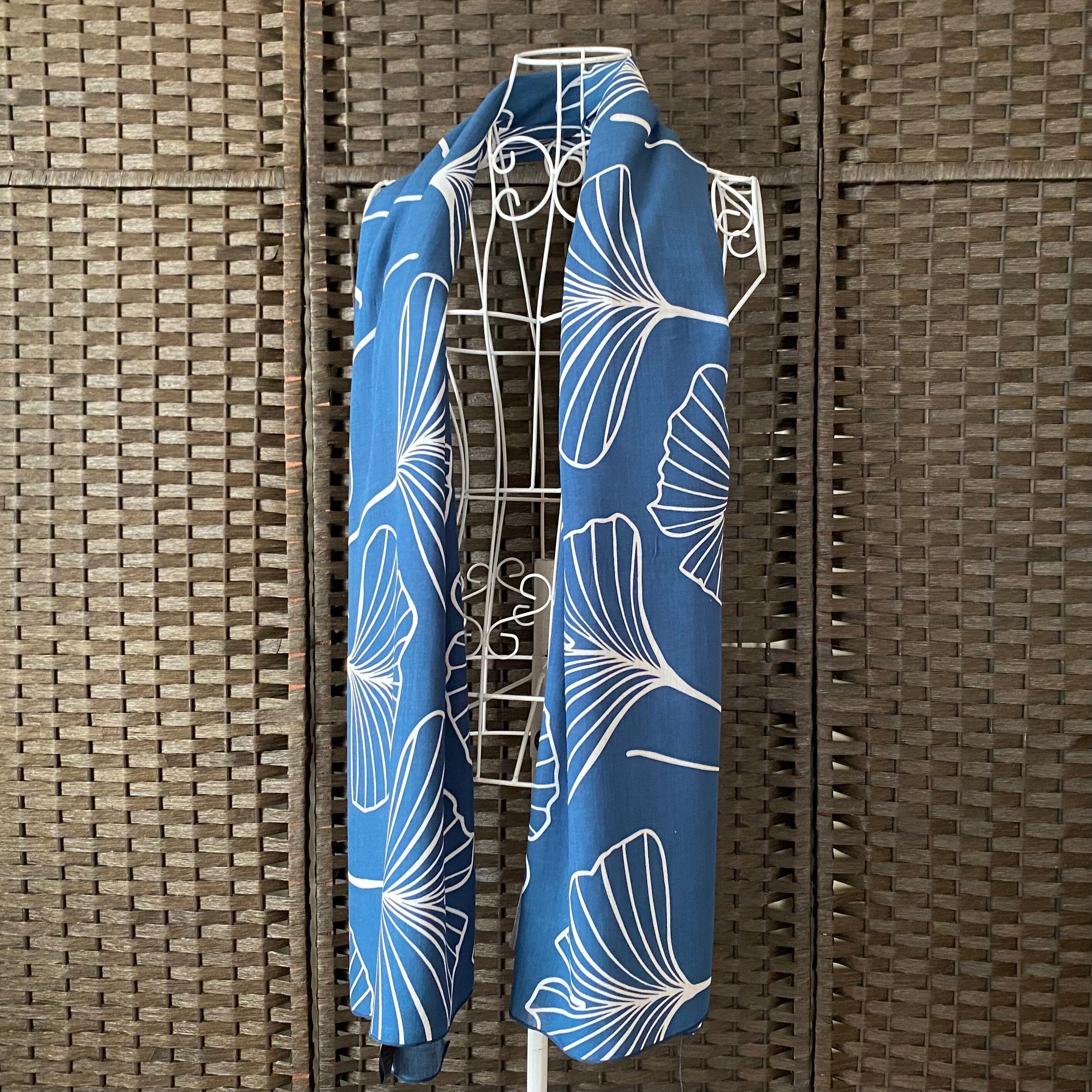 パレオ 銀杏柄 【GINKGO LEAF-NAVY-WHITE】ハワイ直輸入 パレオ 大判 ストール フラダンス タヒチアン