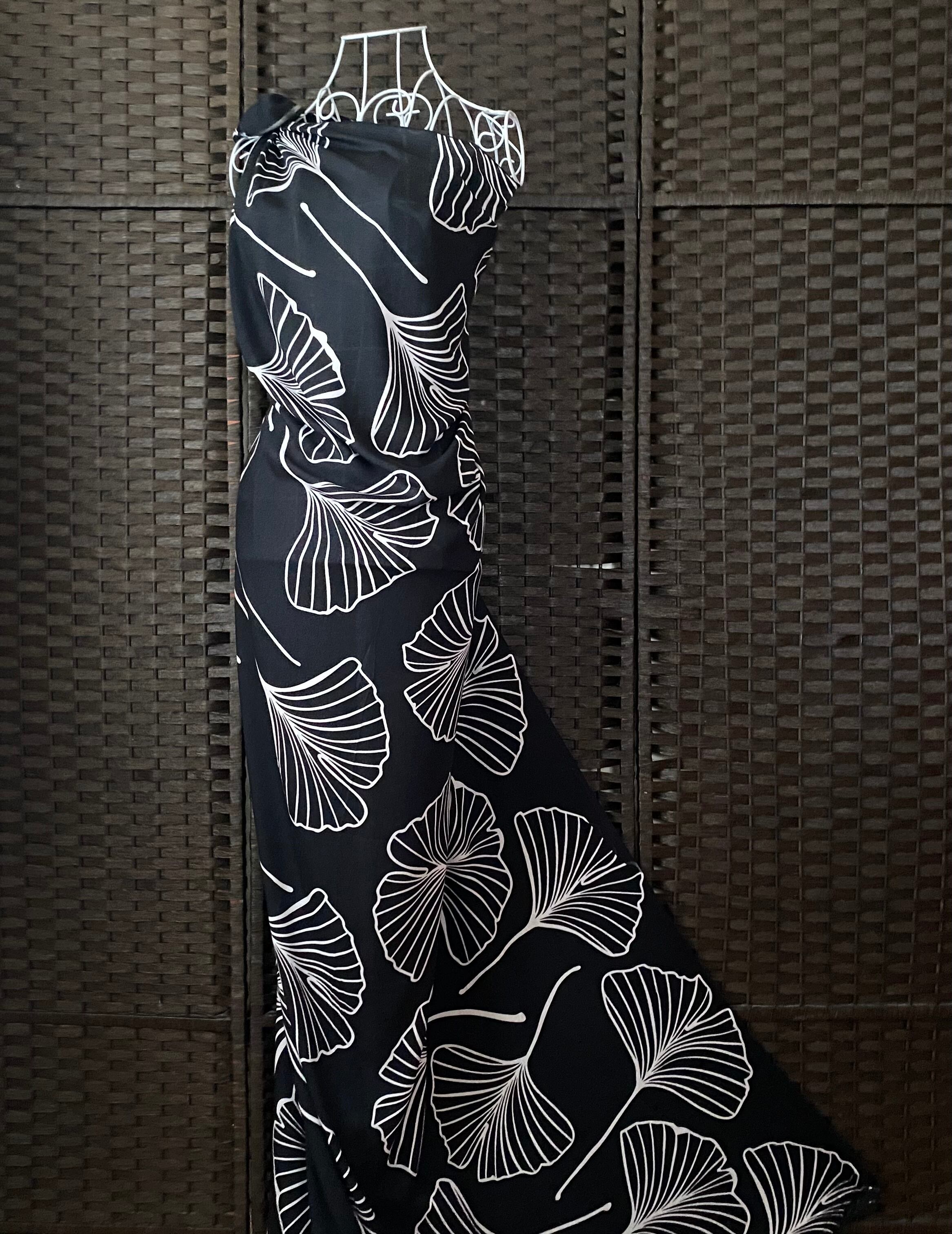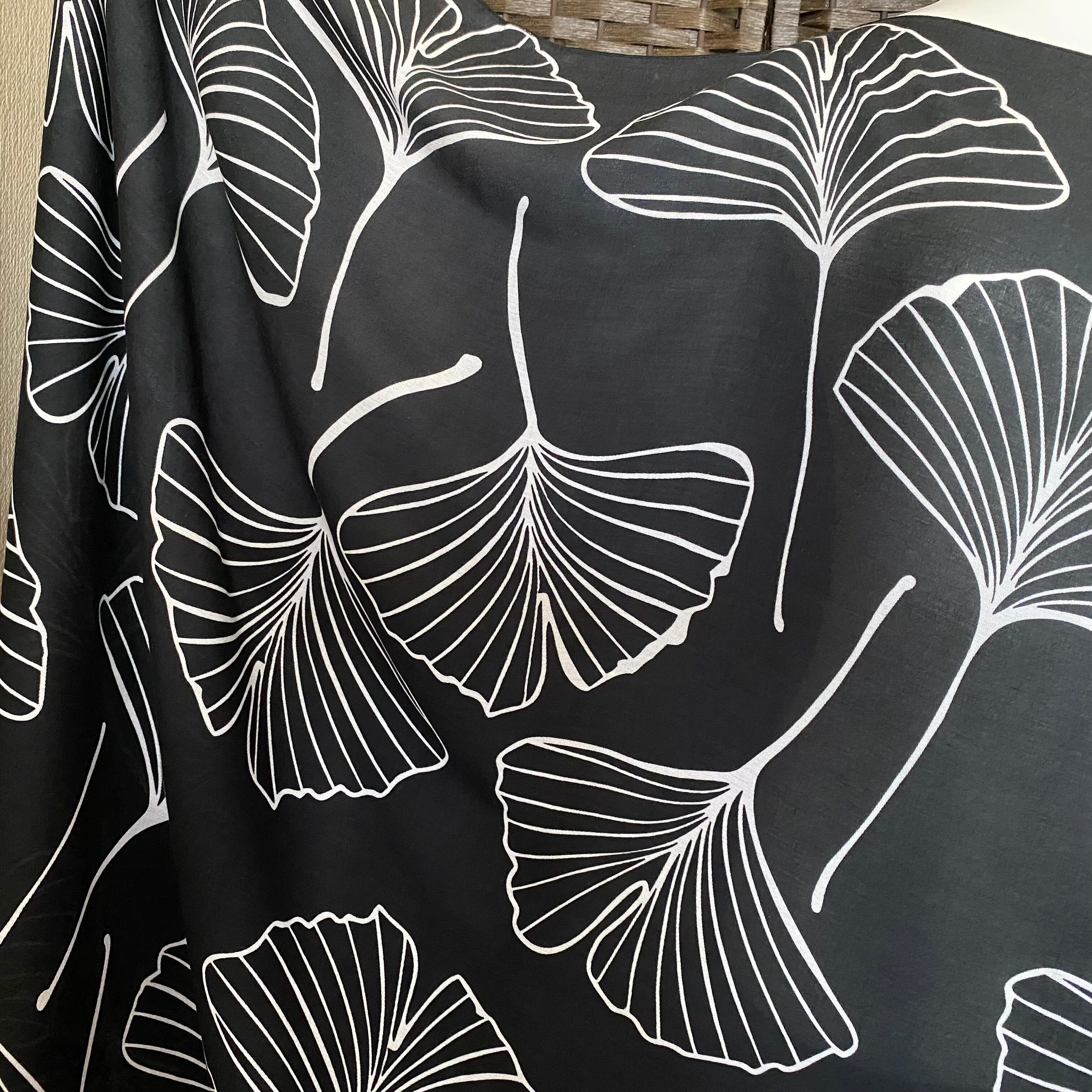 パレオ 銀杏柄 【GINKGO LEAF-BLACK-WHITE】ハワイ直輸入 パレオ 大判 ストール フラダンス タヒチアン