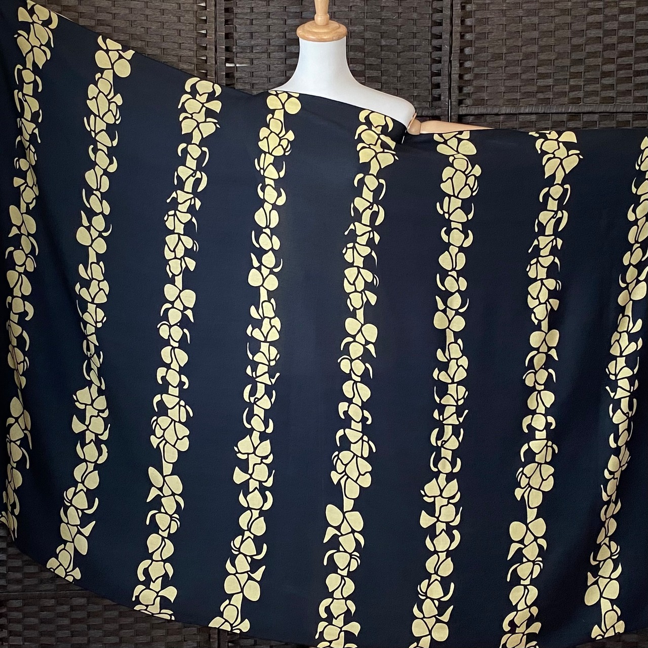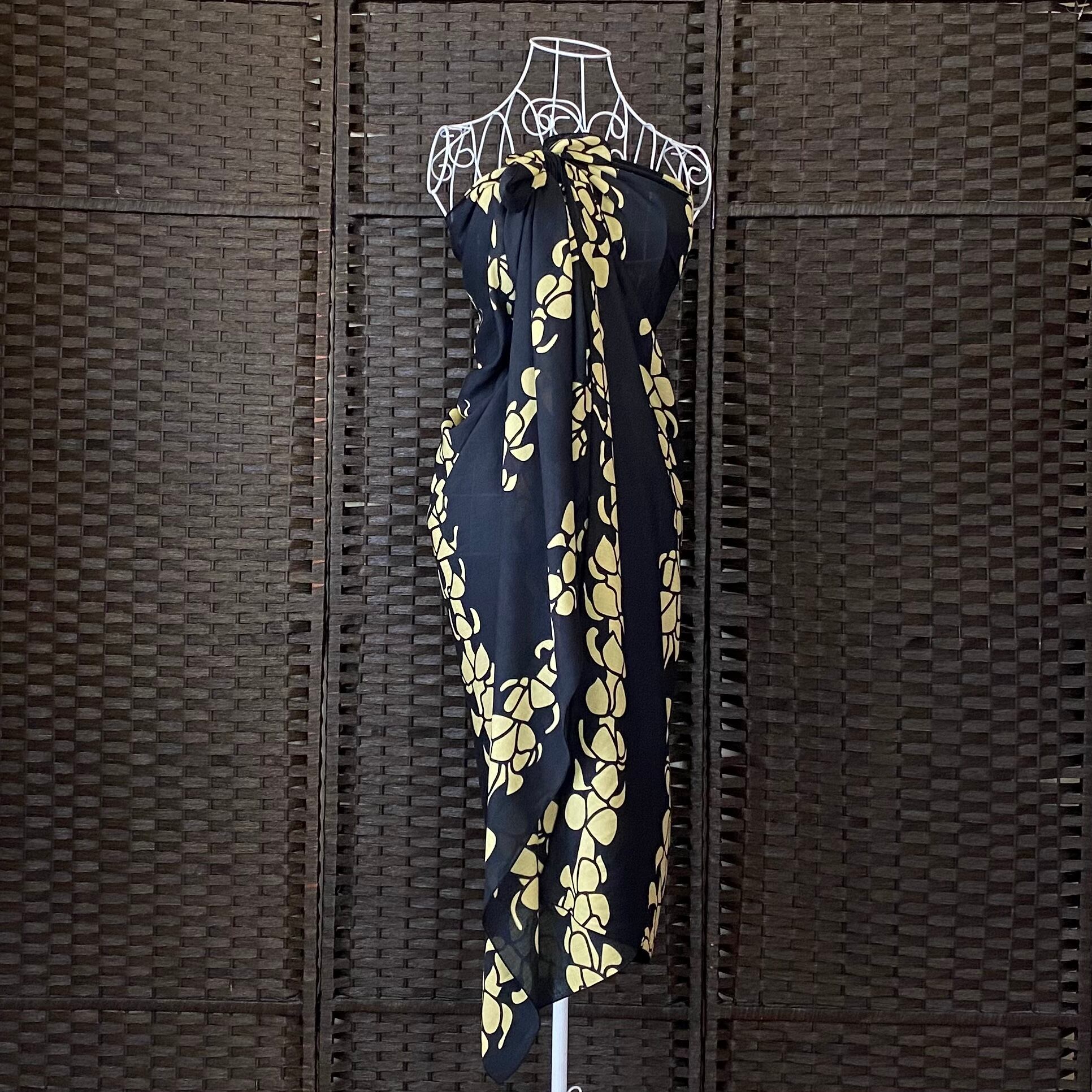 パレオ 【PUAKENIKENI LEI BLACK-YELLOW】ハワイ直輸入 パレオ 大判 ストール フラダンス タヒチアン