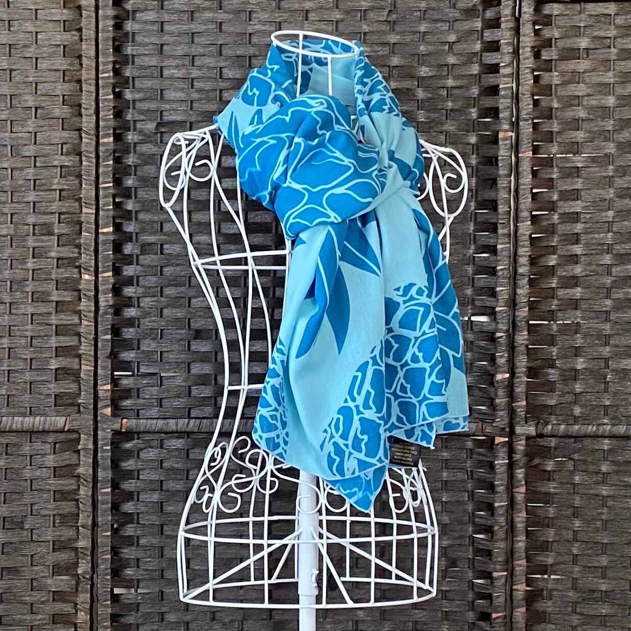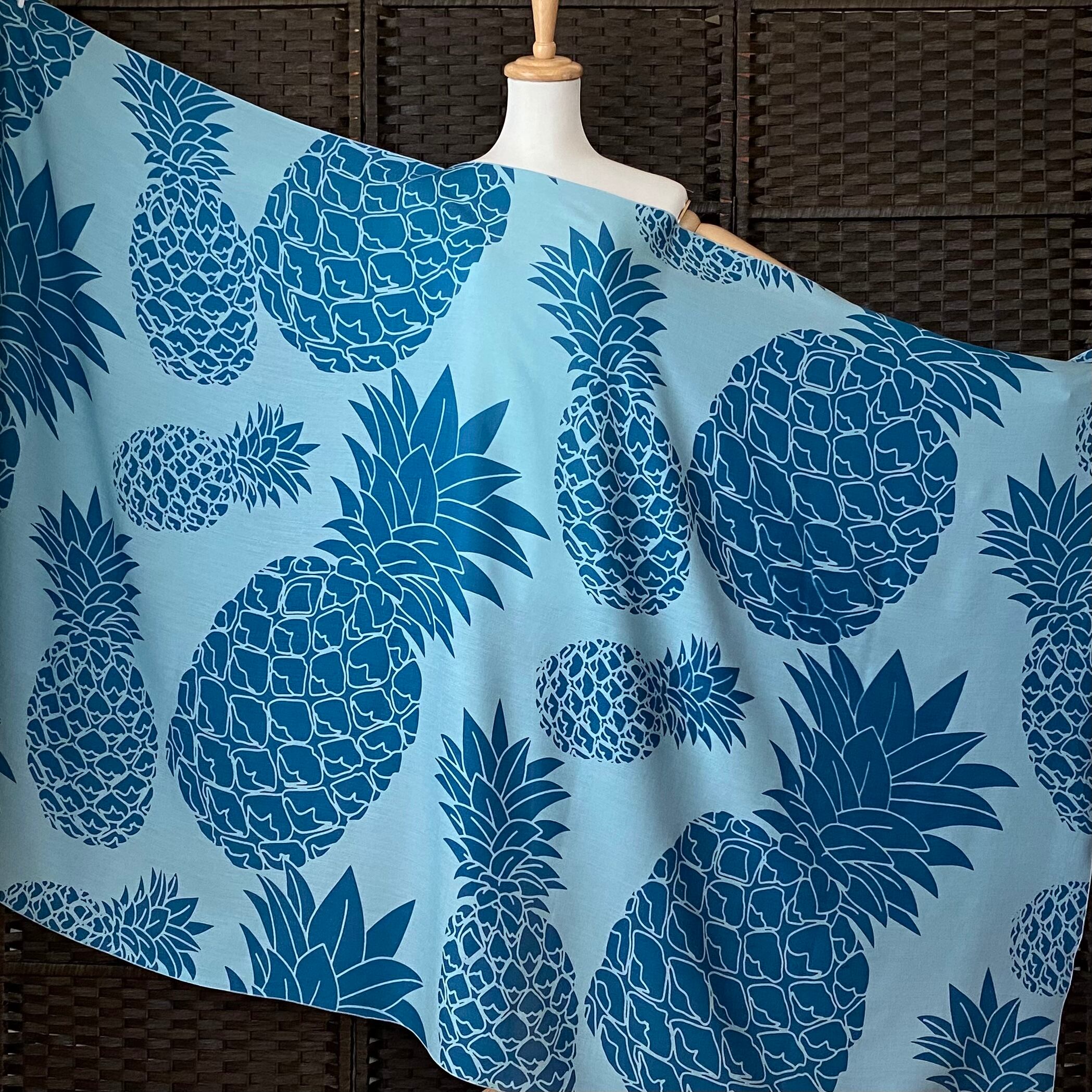 パレオ 【 BIG PINEAPPLE-EGGSHELL BLUE-MYKONOS BLUE】ハワイ直輸入 パレオ 大判 ストール フラダンス タヒチアン
