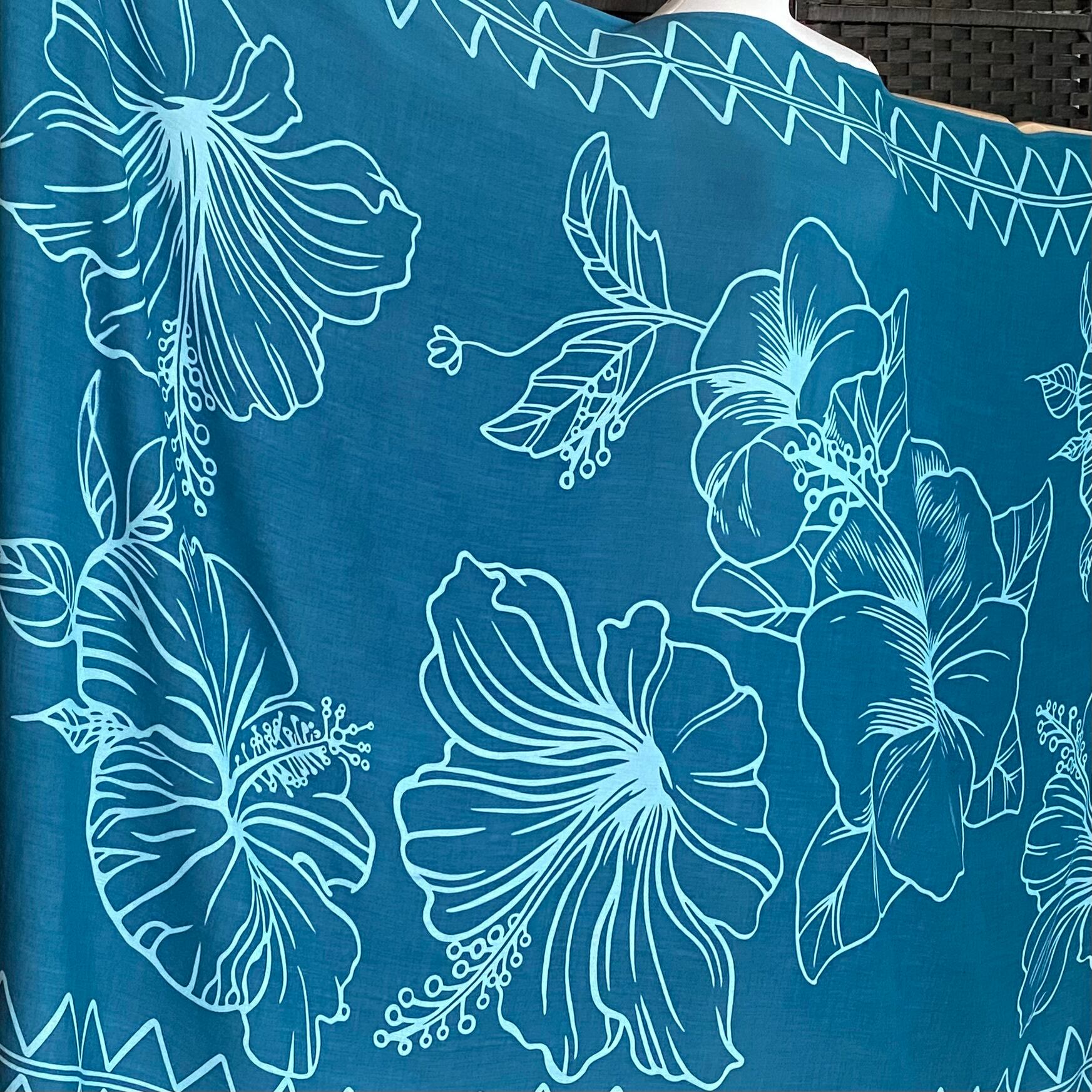 パレオ 【HIBISCUS SKETCH-DEEP LAKE-BEACH GLASS】ハワイ直輸入 パレオ 大判 ストール フラダンス タヒチアン