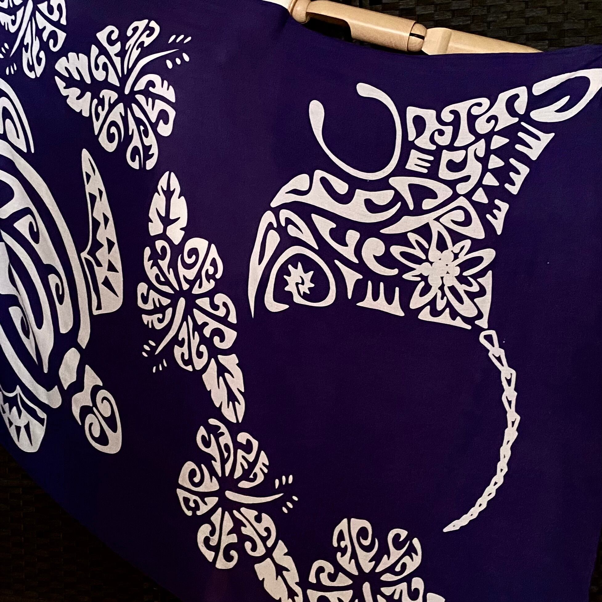 パレオ 【MANTHA RAY-D.PURPLE-WHITE】ハワイ直輸入 パレオ 大判 ストール フラダンス タヒチアン