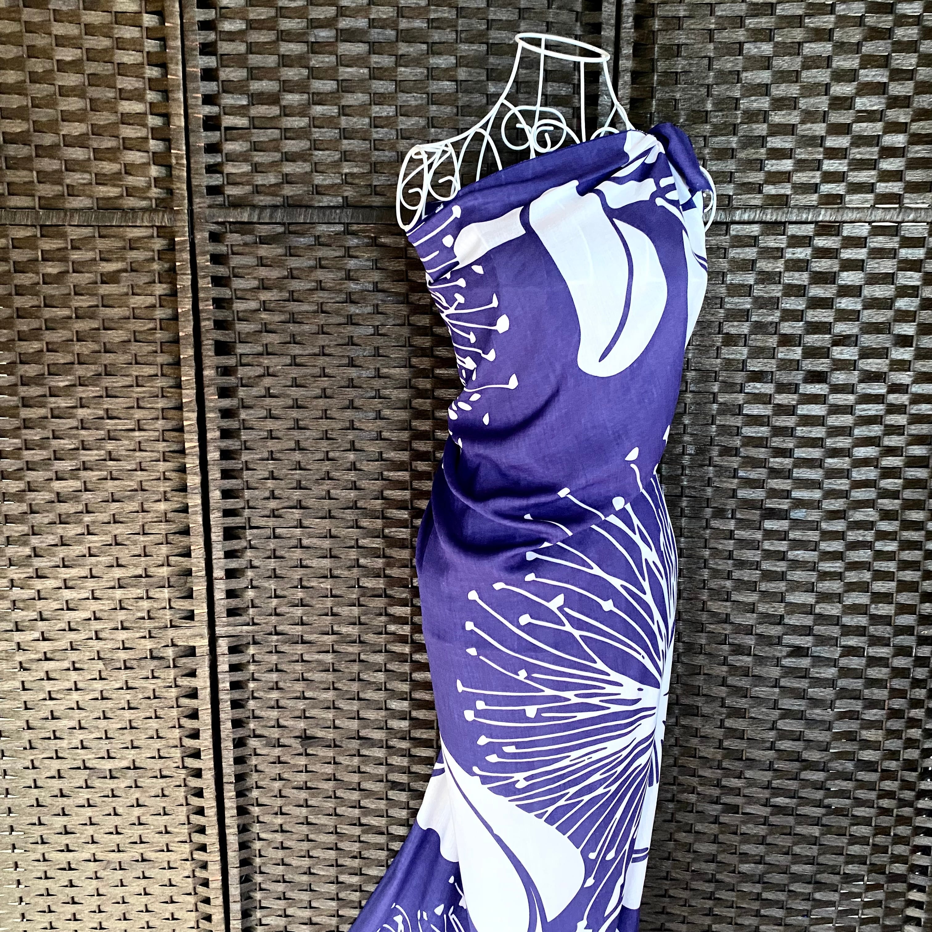 パレオ 【OHIA FLOWER- D.PURPLE-WHITE】ハワイ直輸入 パレオ 大判 ストール フラダンス タヒチアン