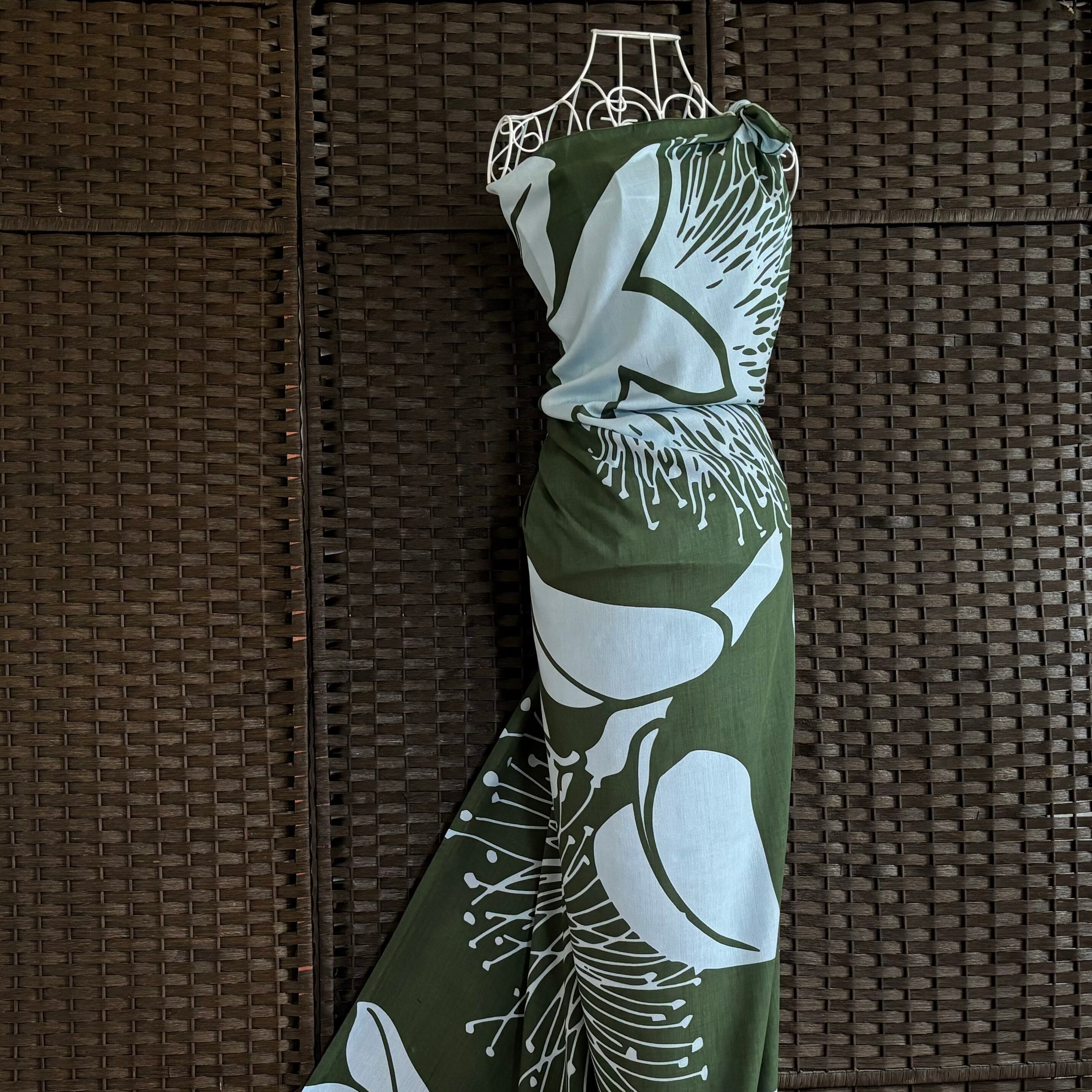 パレオ 【OHIA FLOWER-HUNTER GREEN-SHOOTHING SEA】ハワイ直輸入 パレオ 大判 ストール フラダンス タヒチアン