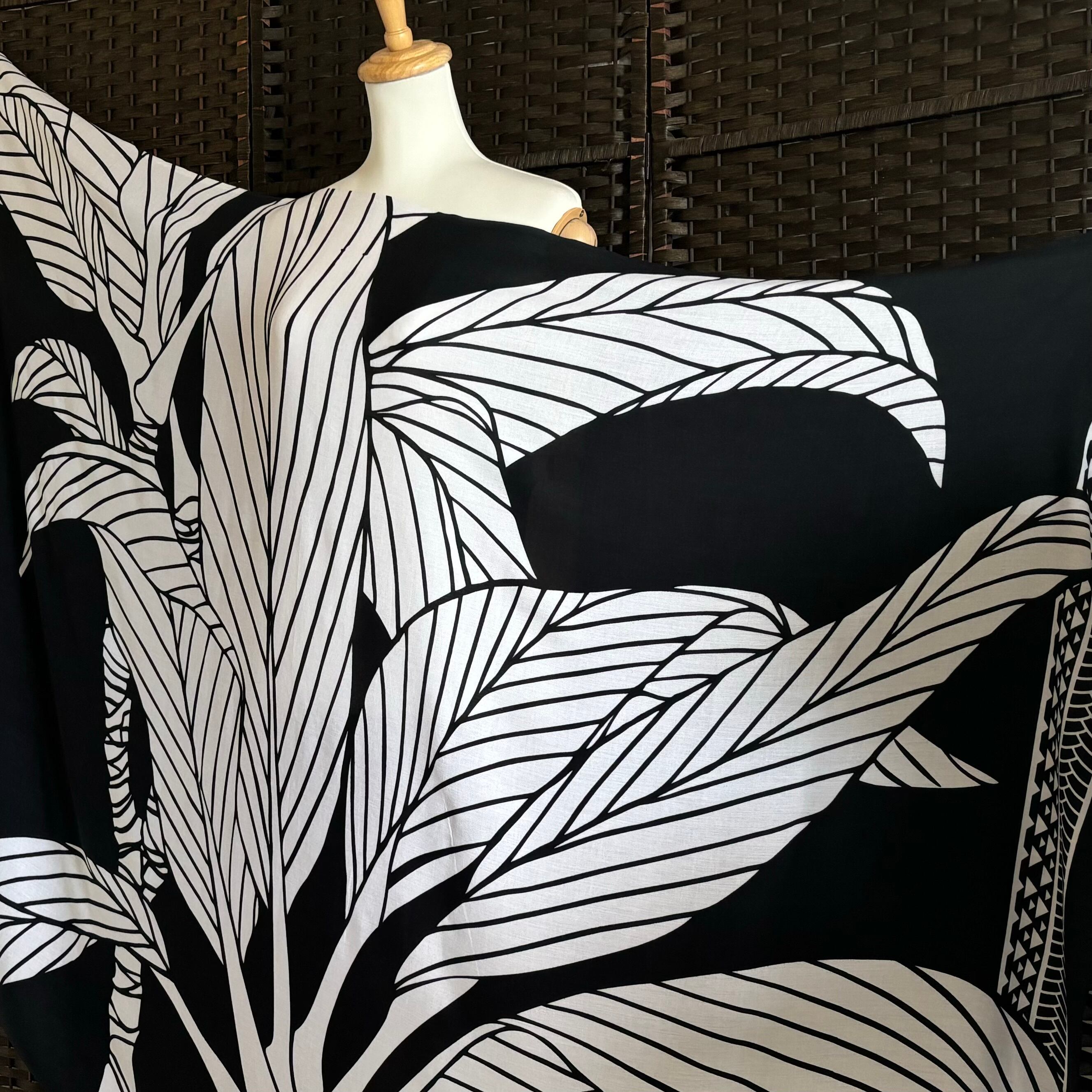 パレオ 【TI LEAF-BLACK-WHITE】ハワイ直輸入 パレオ 大判 ストール フラダンス タヒチアン